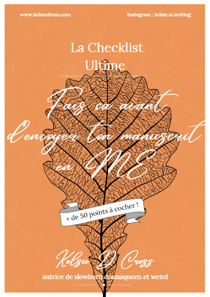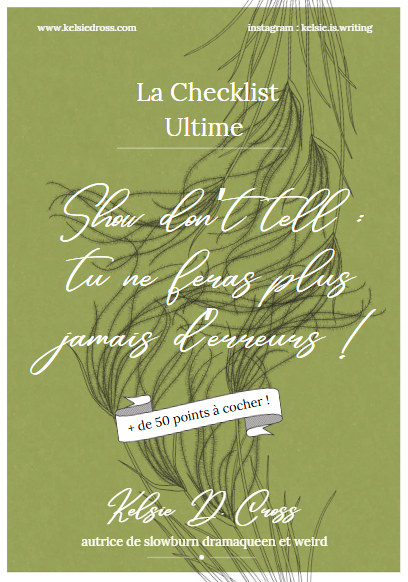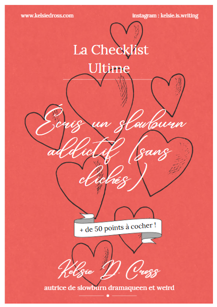 Accède à toutes mes checklists, elles ne sont disponibles qu’en s’inscrivent à ma newsletter. Pour l’instant, seule la checklist « Ecris un slowburn addictif (et sans clichés) » est disponible. Le reste sera pour le mois prochain.